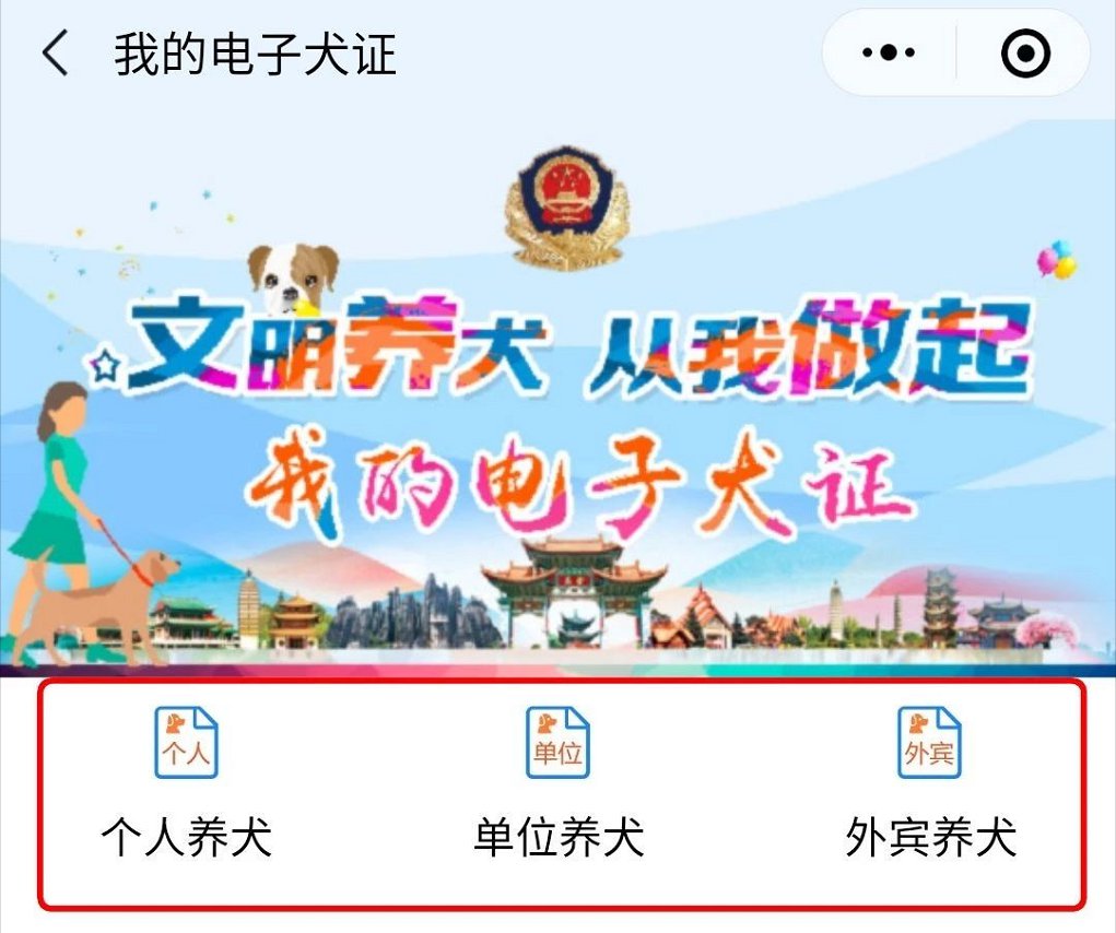 1、進(jìn)入官網(wǎng),根據(jù)已辦理的電子犬證類型,調(diào)出電子犬證頁面,按已辦理犬證類型選擇對(duì)應(yīng)“個(gè)人養(yǎng)犬”、“單位養(yǎng)犬”或“外賓養(yǎng)犬”。