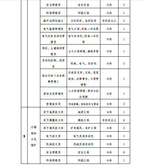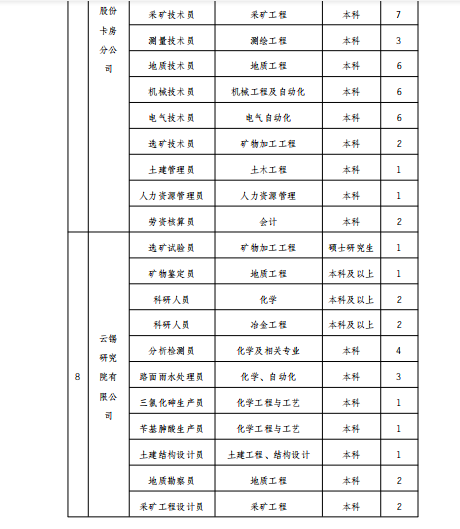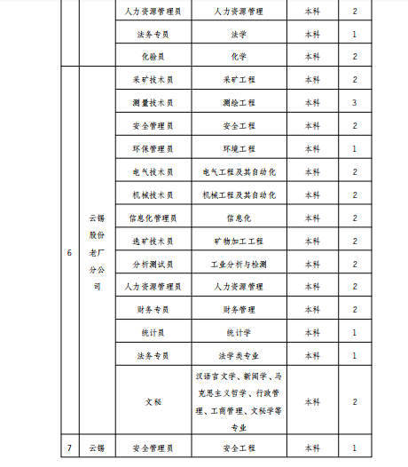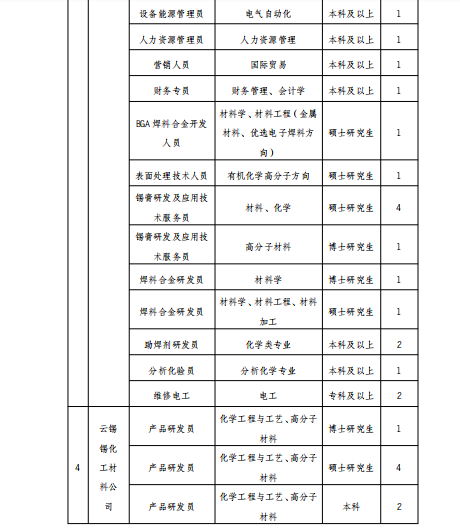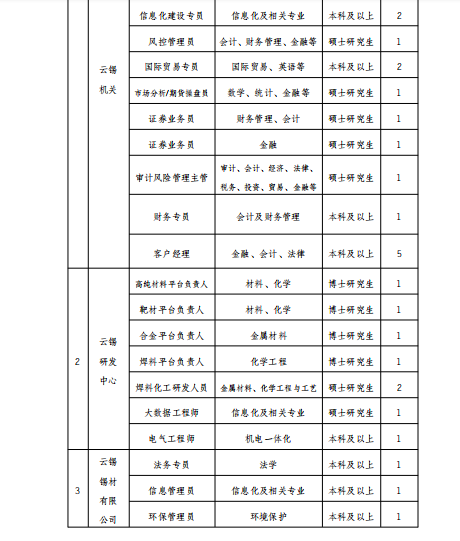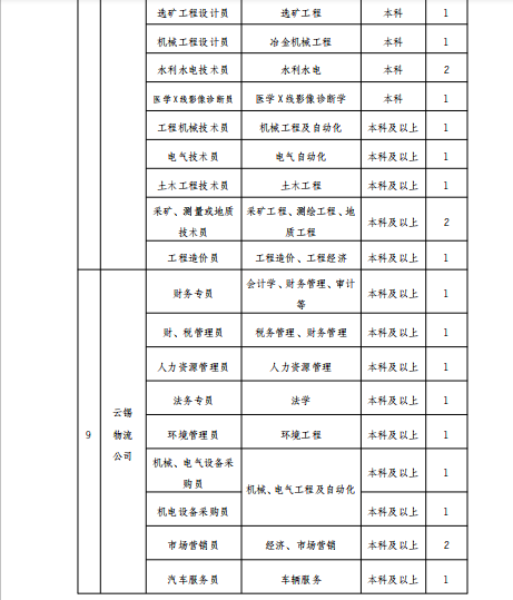 云南錫業集團(控股)有限責任公司2020年招聘公告