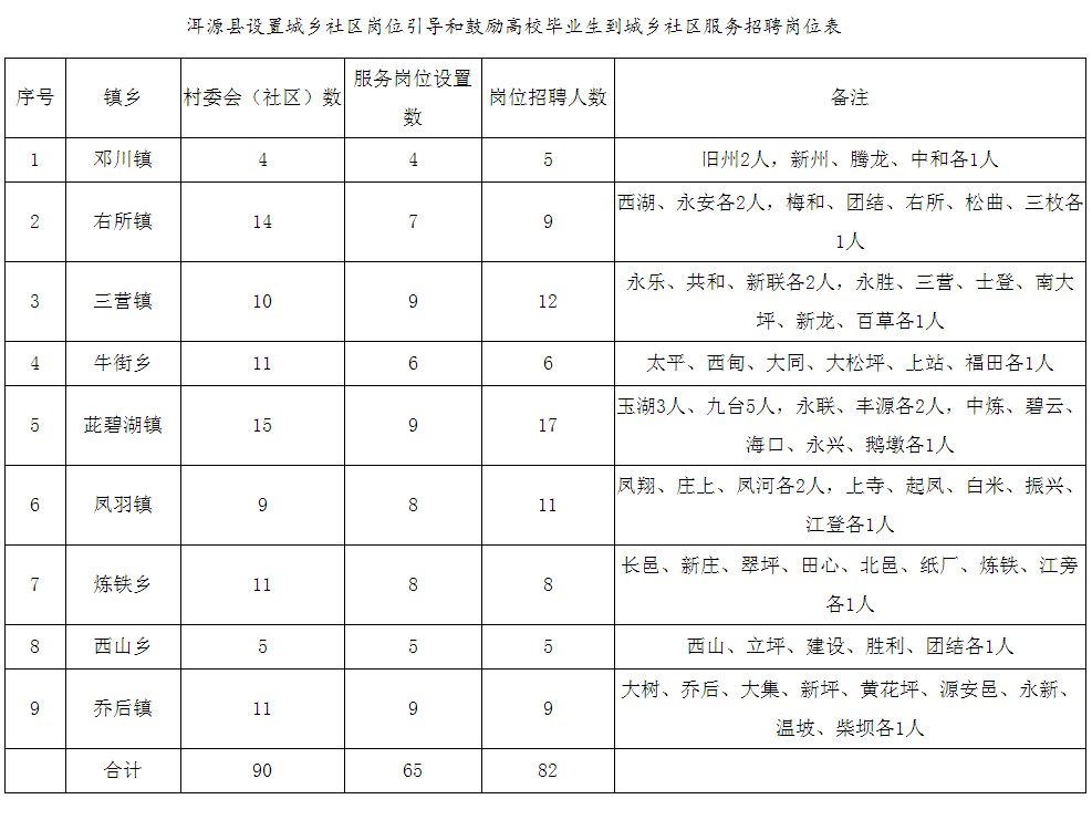 根據中共云南省委組織部、云南省人力資源和社會保障廳、云南省民政廳、云南省教育廳、云南省財政廳《關于設置城鄉社區崗位引導和鼓勵高校畢業生到城鄉社區服務的通知》(云人社通〔2020〕48號)和中共大理州委組織部、大理州人力資源和社會保障局、大理州民政局、大理州教育體育局、大理州財政局《關于轉發設置城鄉社區崗位引導和鼓勵高校畢業生到城鄉社區服務的通知》(大人社轉〔2020〕94號)及《洱源縣設置城鄉社區崗位引導和鼓勵高校畢業生到城鄉社區服務的實施方案》的精神,現將洱源縣招聘城鄉社區服務崗位人員工作相關事宜公告如下。