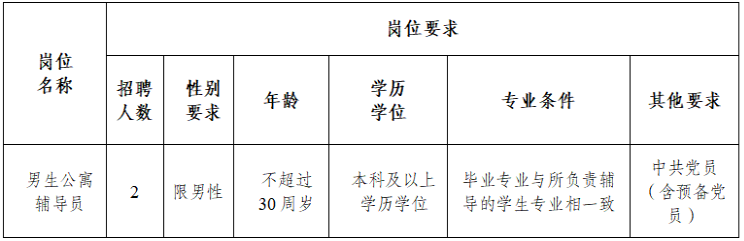 為進一步加強學校專職輔導員隊伍建設,經學校研究,學校決定招聘2名編制外合同制專職輔導員,具體招聘有關事項公告如下: