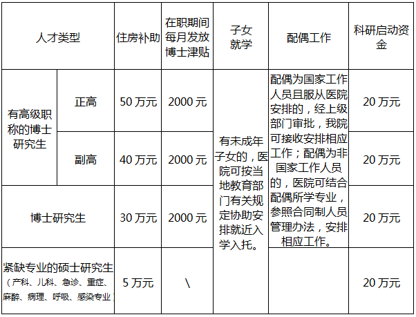 按國家有關政策管理和享受相關待遇外,并按醫院有關規定享受引進高層次人才待遇,具體如下: