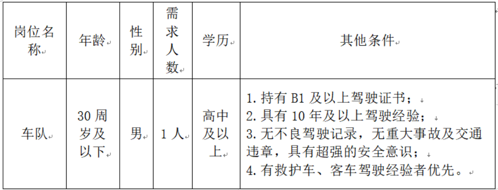 因工作需要,根據科室用人計劃,經醫院研究決定,計劃招聘車隊駕駛人員1名,現將有關招聘事宜公告如下。