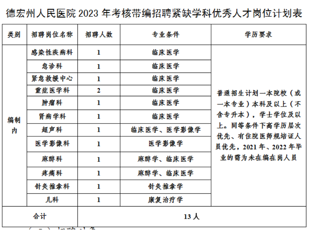 德宏州人民醫院2023年考核招聘緊缺專業學科優秀人才公告