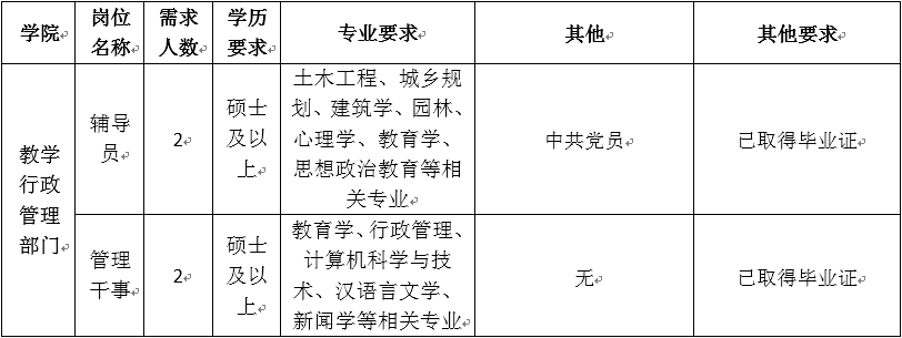 根據(jù)學(xué)院工作需要,現(xiàn)面向社會(huì)補(bǔ)充招聘教師及管理干事,具體要求如下: