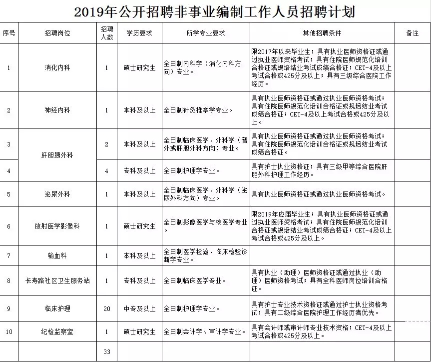 根據醫院工作需要,經研究決定,2019年云南省第三人民醫院面向社會公開招聘非事業編制工作人員33人,現將有關招聘事宜公告如下: