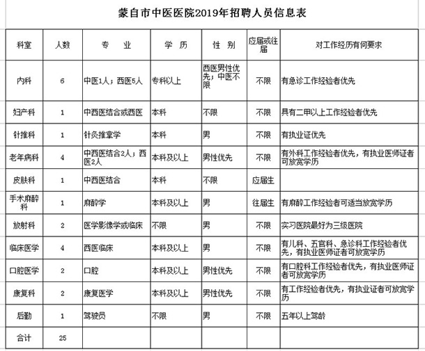蒙自市中醫醫院2019年招聘信息