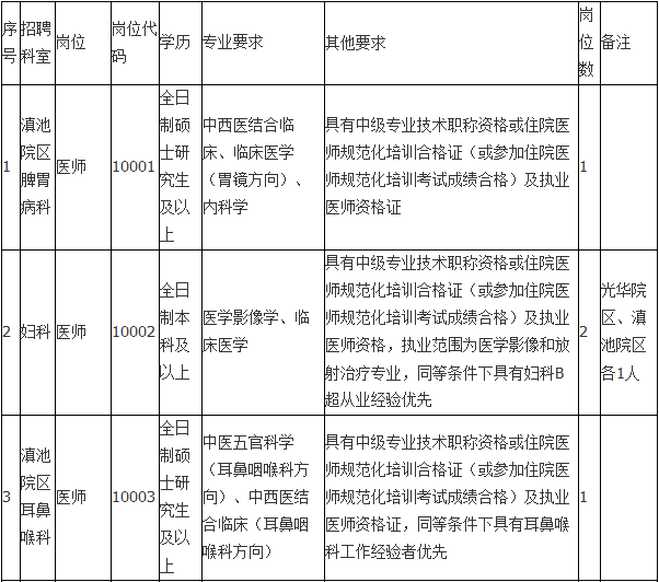 云南省中醫醫院2019年第一次急需崗位編制外(勞務派遣)人員招聘啟事