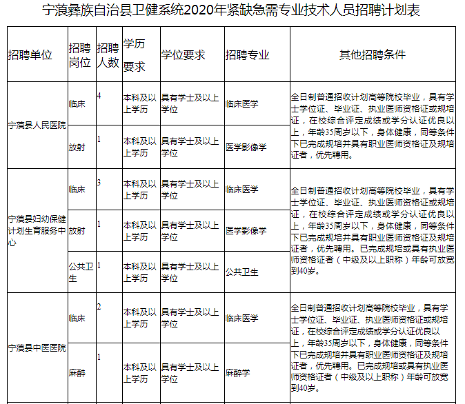 寧蒗彝族自治縣衛生健康局2020年公開招聘編制內緊缺急需專業技術人員的公告