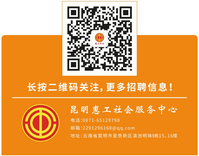 本公告最終解釋權歸昆明惠工社會服務中心所有,后續招聘相關信息請關注“惠工中心”微信公眾號。